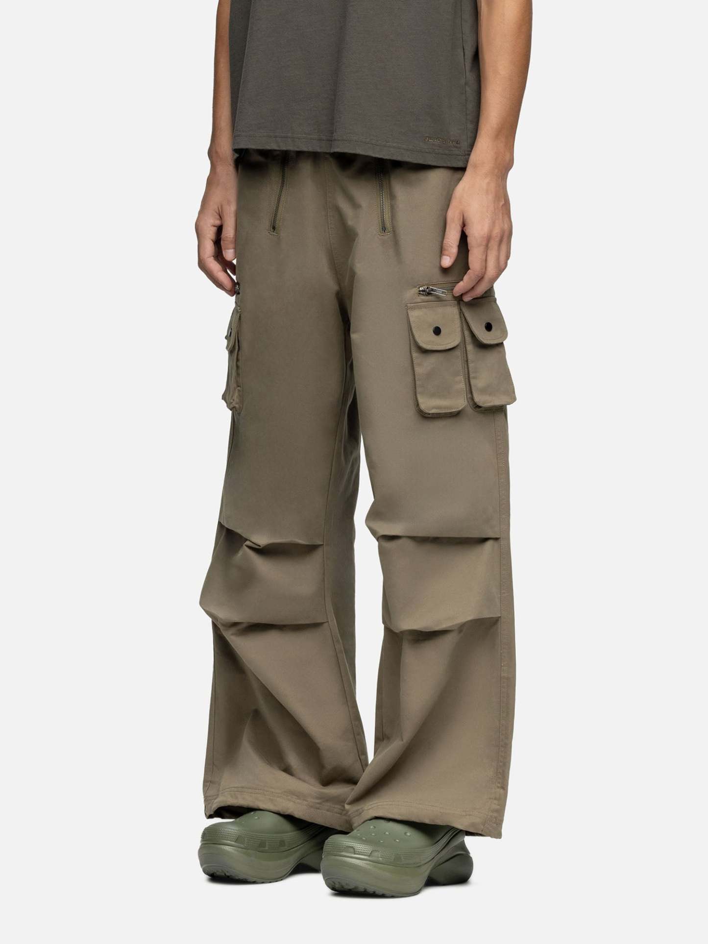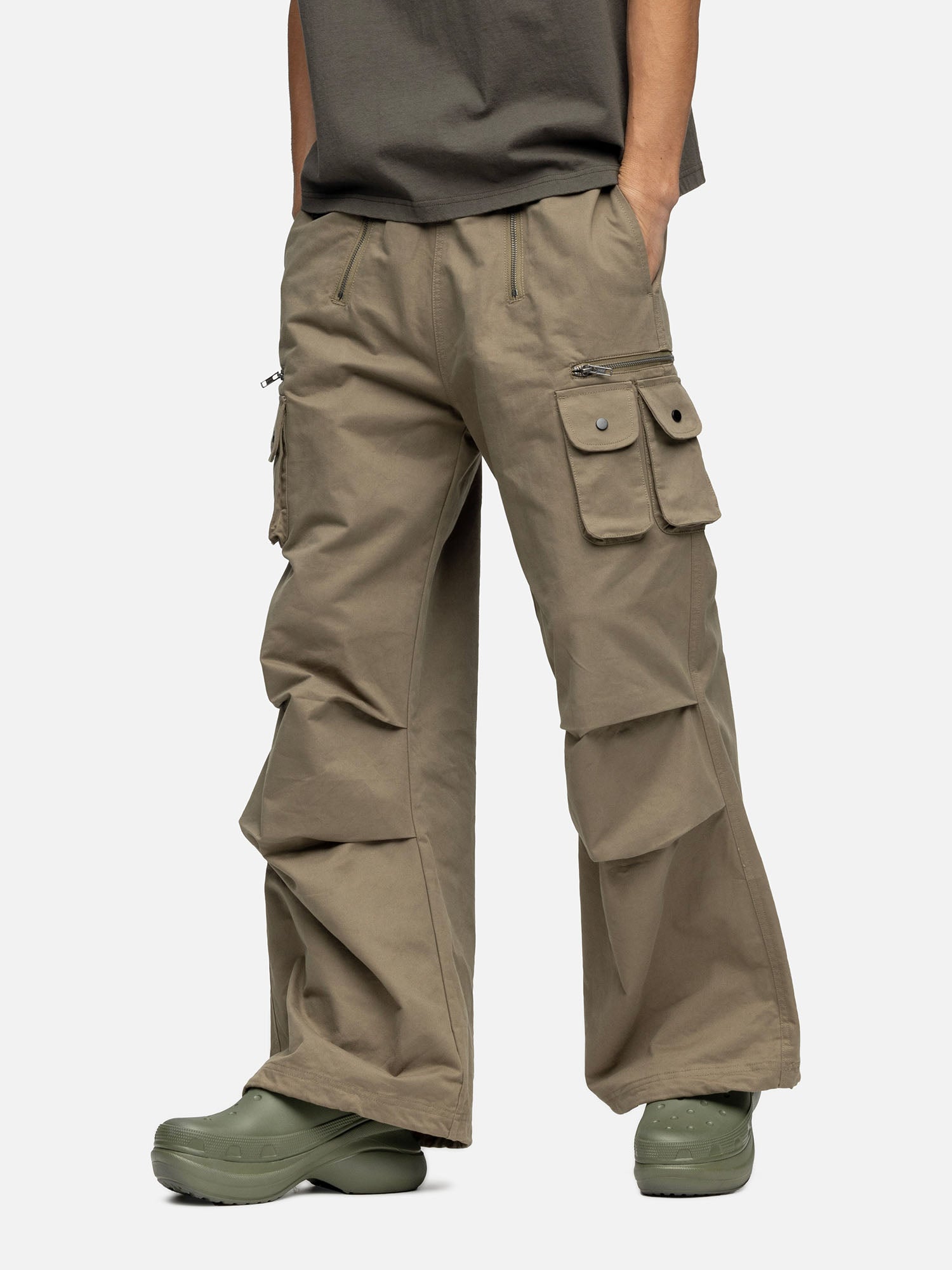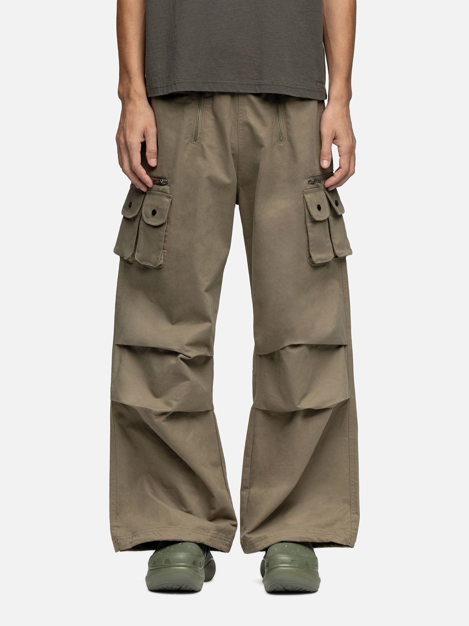 Crafted from cotton, the W5 Cargo features a double zipper opening, a buckle on the waist, front pockets, two boxed side pockets, and a zipper pocket on the side. Finishing off with pleats and drawstring leg opening.