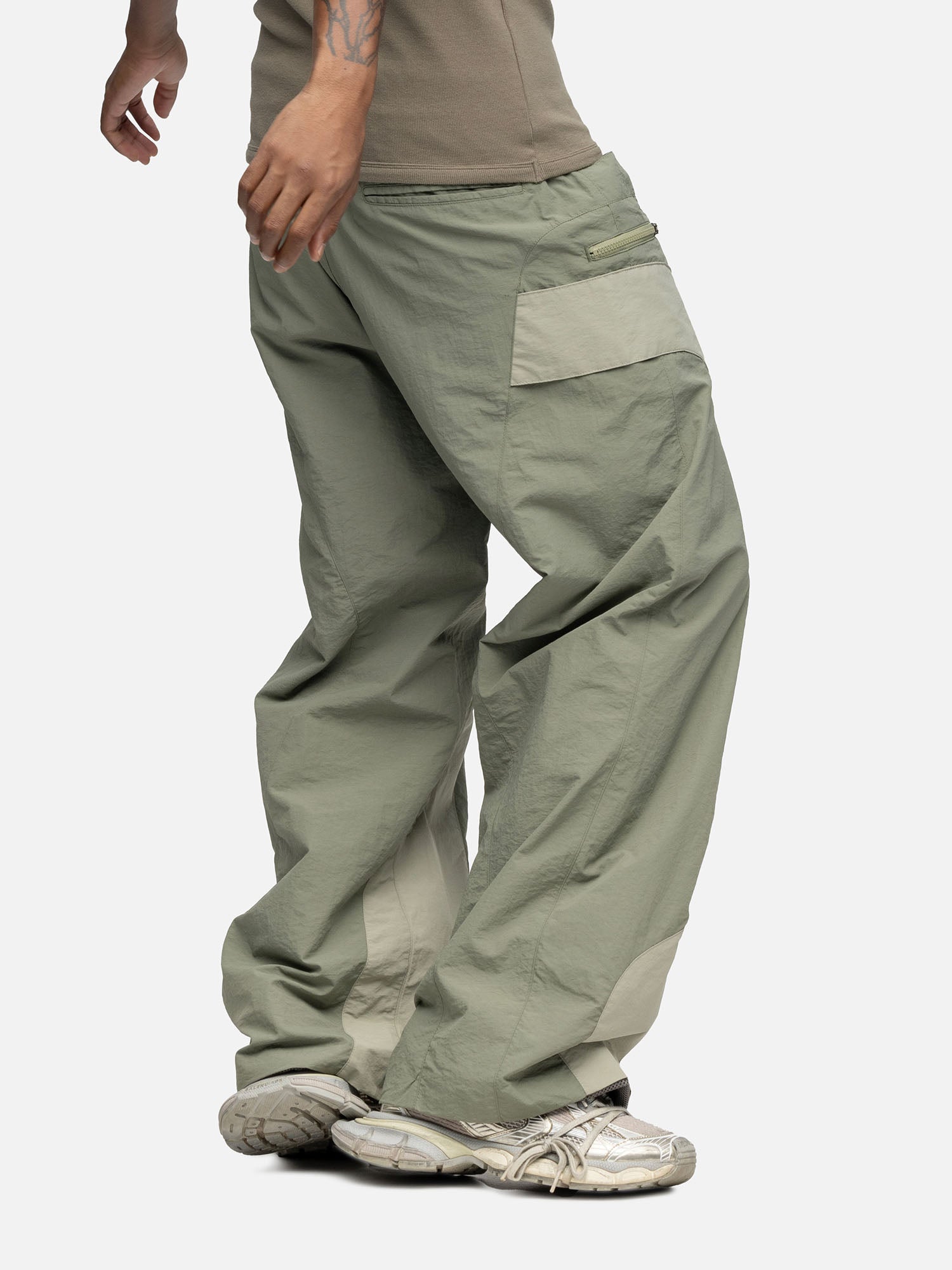 Crafted from plain-weave nylon, the W7 Cargo features a decorative front and back panel, a half-elastic waistband with a centered zipper, and a buckle on the waist. Finishing off with baggy straight-leg openings.